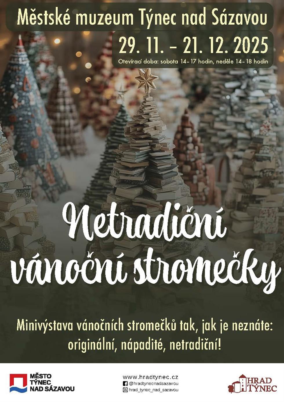 Navštivte minivýstavu vánočních stromečků tak, jak je neznáte. Originální, nápadité, netradiční stromečky budou k vidění ve velké galerii muzea o adventních víkendech: sobota od 14 do 17 hodin, neděle od 14 do 18 hodin.