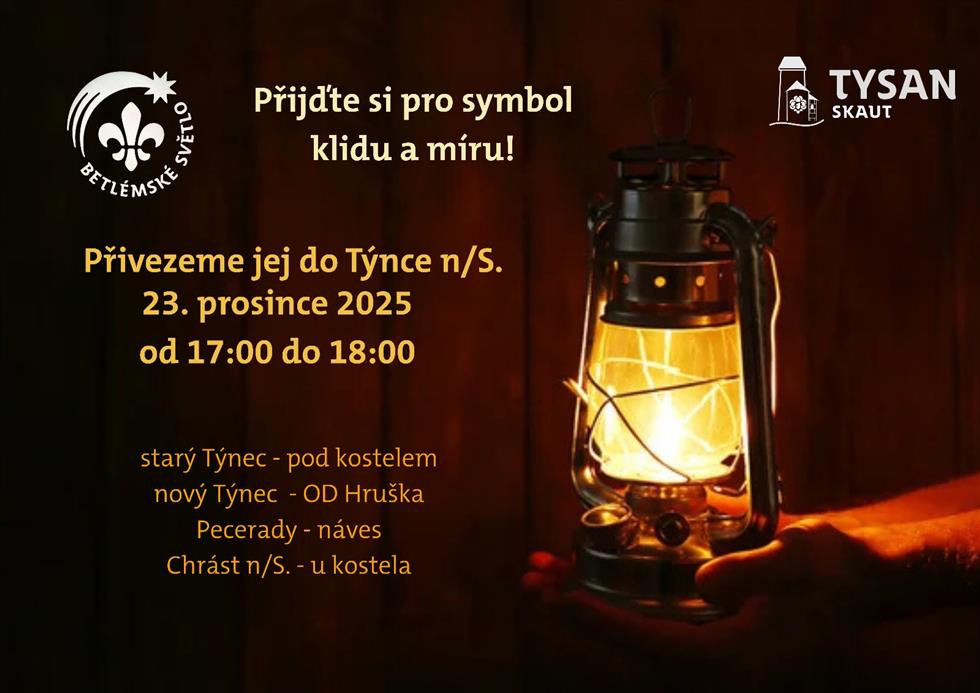 Skautské oddíly JUTY a MEANDR Vás zvou na již tradiční předvánoční událost. Jako každý rok Vám přineseme v předvánočním čase plamínky Betlémského světla, tedy možnost proměnit své domovy v cíl téměř 4 000 kilometrů dlouhé pouti. Přijďte si pro světlo a teplo pravých Vánoc, těšíme se na Vás.