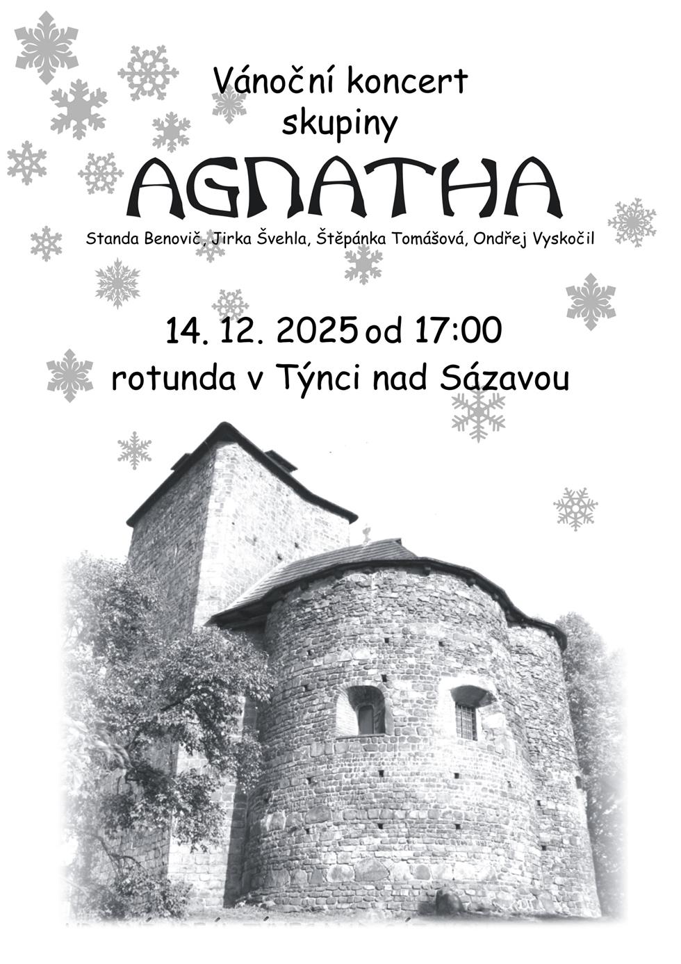 Kapela Agnetha vás srdečně zve na svůj adventní koncert do rotundy hradu Týnec nad Sázavou.