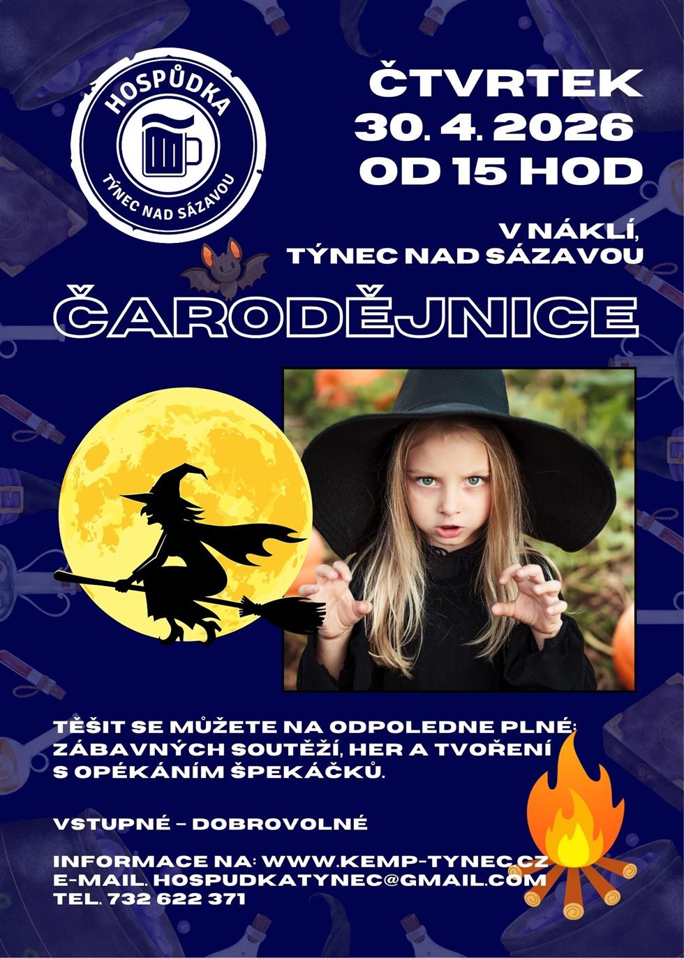 Zveme malé i velké na čarodějnické odpoledne v Náklí. Připraveny budou soutěže, hry a tvoření pro děti, chybět nebude ani opékání špekáčků. Přijďte si užít tradiční jarní akci v přátelské atmosféře.